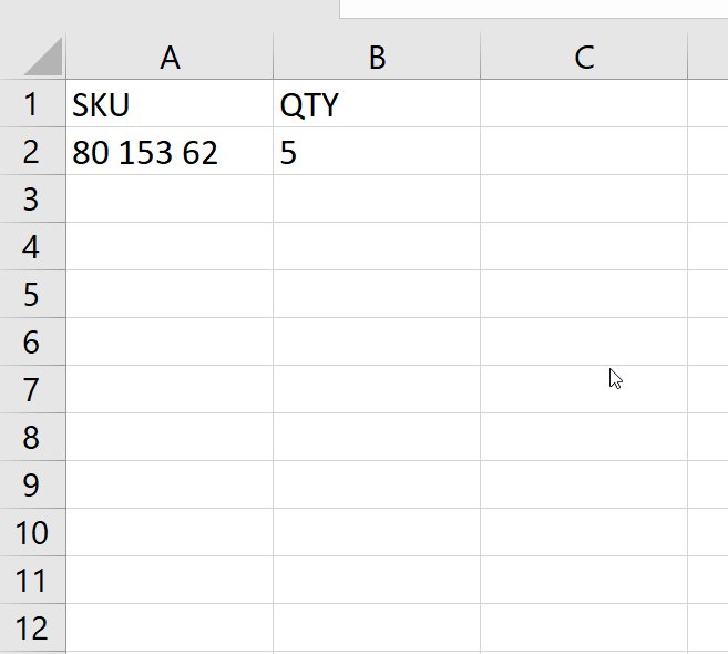 De importfunctie vindt u in het winkelmandje. Als u het "importsymbool" niet ziet, laadt u eerst een voorbeeldproduct in het winkelmandje. Vergeet niet het handmatig toegevoegde product uit het winkelmandje te verwijderen voordat u de bestelling verzendt. Verwijder het handmatig toegevoegde product uit het winkelmandje voordat u de bestelling verzendt.