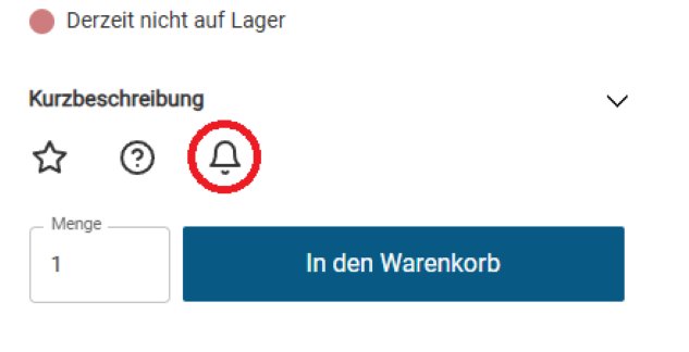 Open het gewenste artikel in de shop en klik op het belsymbool. Voer het e-mailadres in dat je wilt ontvangen en je wordt op de hoogte gesteld zodra het artikel weer beschikbaar is.