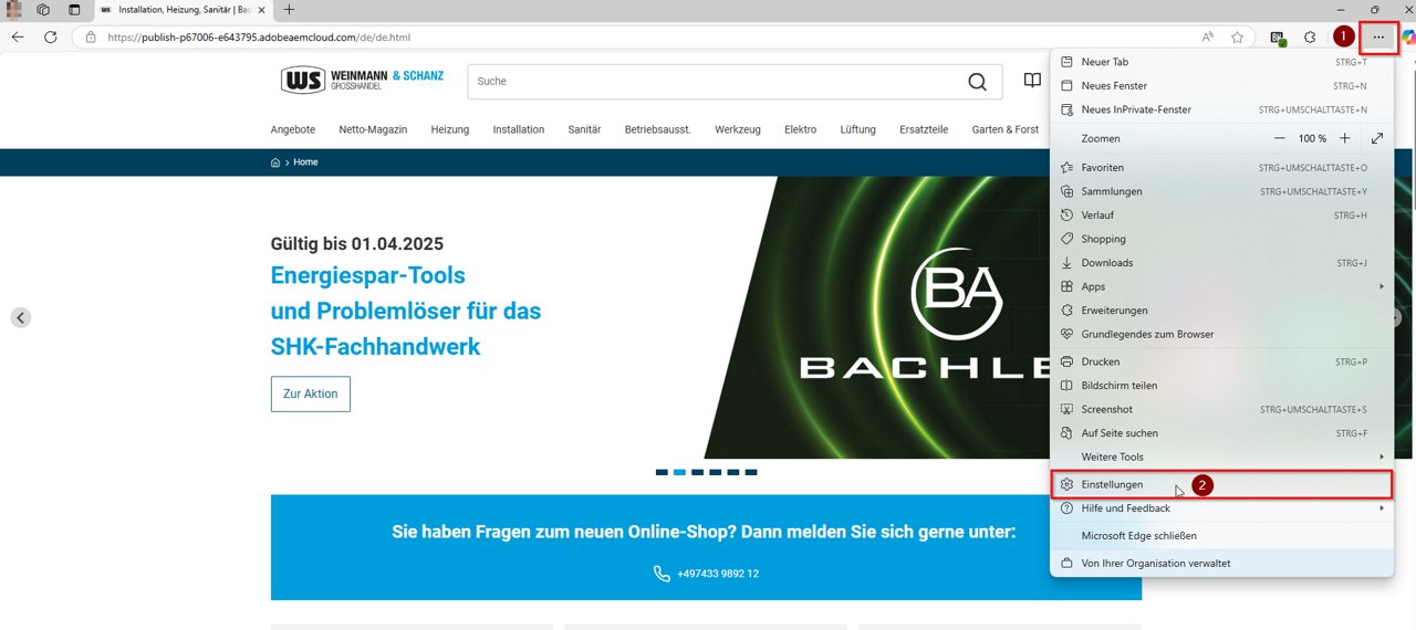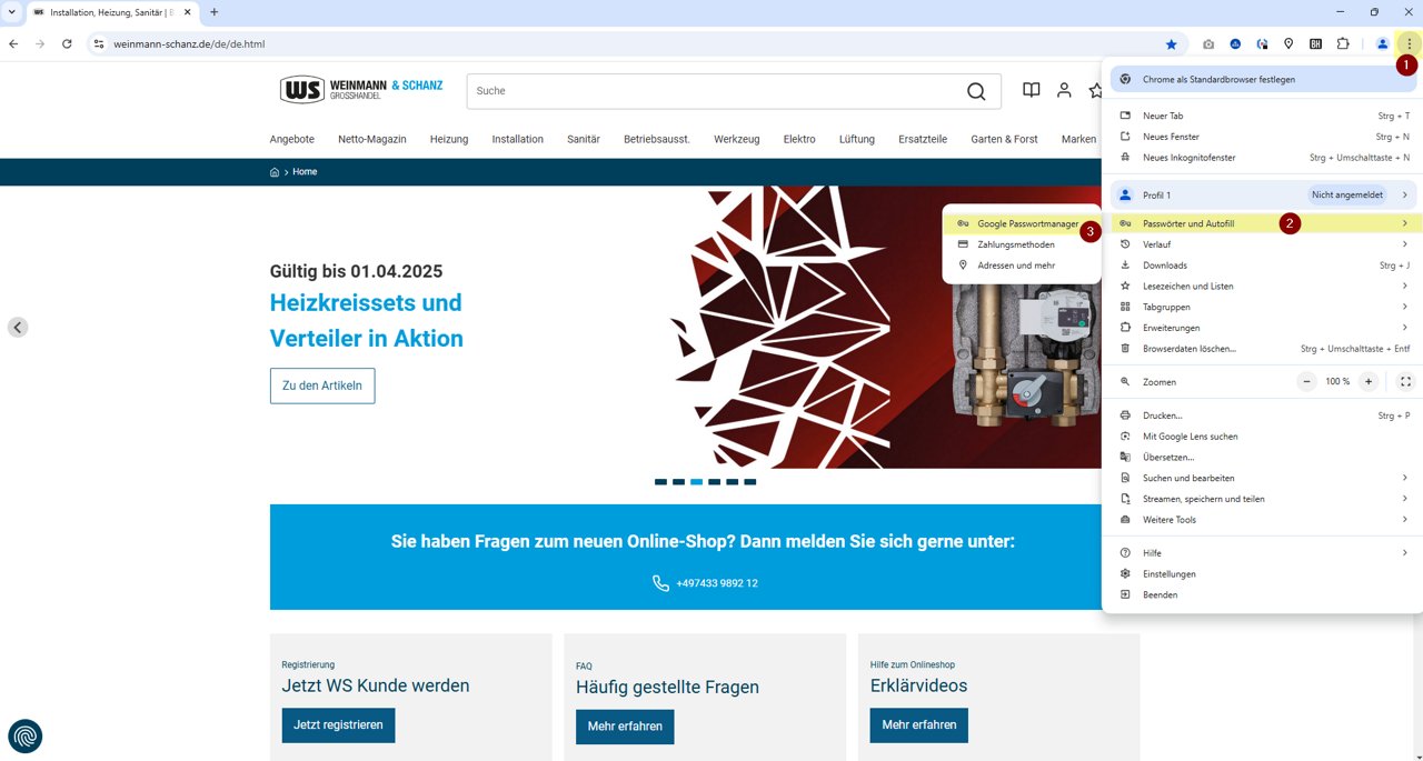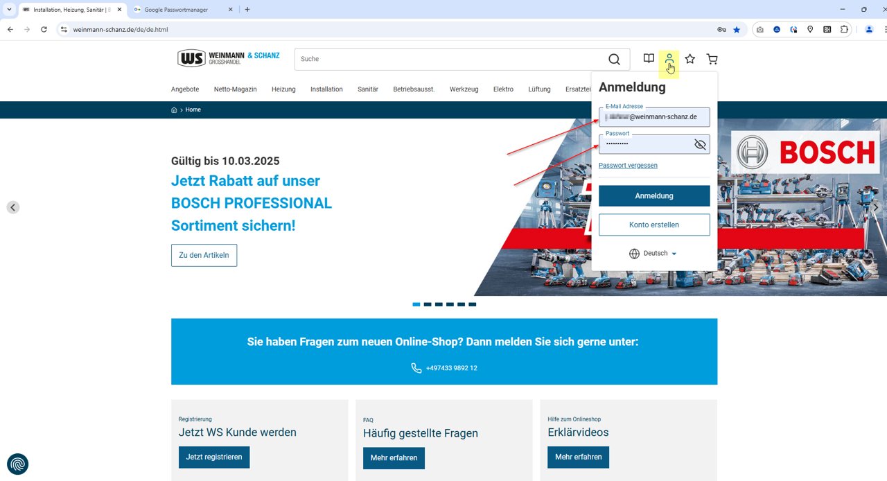 4. Als je nu de Weinmann & Schanz webshop oproept, worden automatisch de juiste toegangsgegevens opgeslagen: