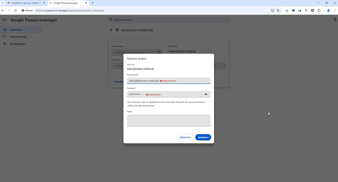 3. Als de toegang hier nu correct in uw browser is opgeslagen, worden deze toegangsgegevens direct in het inlogvenster getrokken wanneer u de website weinmann-schanz.de oproept of u heeft een selectiemogelijkheid als u meerdere toegangen heeft: